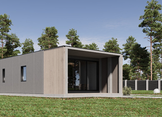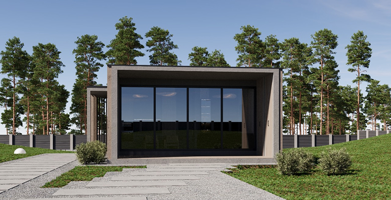 Это дом, изготавливаемый на производстве, который доставляется на участок уже в готовом виде. Дом состоит из бетонных модулей, которые составляются, как конструктор.